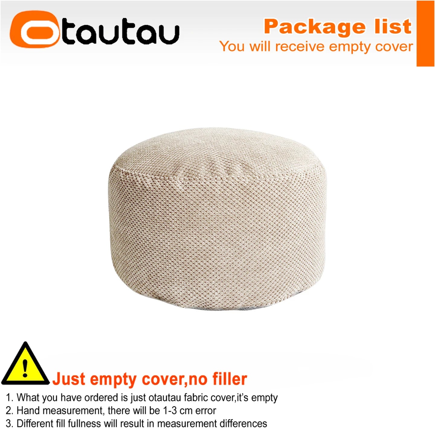 Measurements are taken when the pouf is filled. Empty covers will appear smaller.
